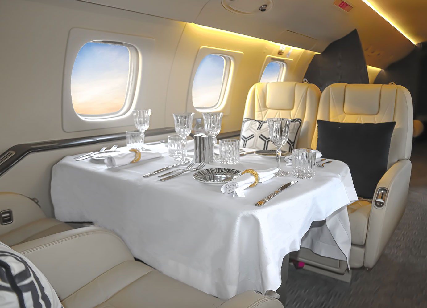 The Legacy 600 cabin, designed for 13 passengers with three distinct zones, is renowned for its ultimate comfort. It offers a perfect balance of intimacy and functionality, providing ample space for meetings while delivering the best amenities in its class.
